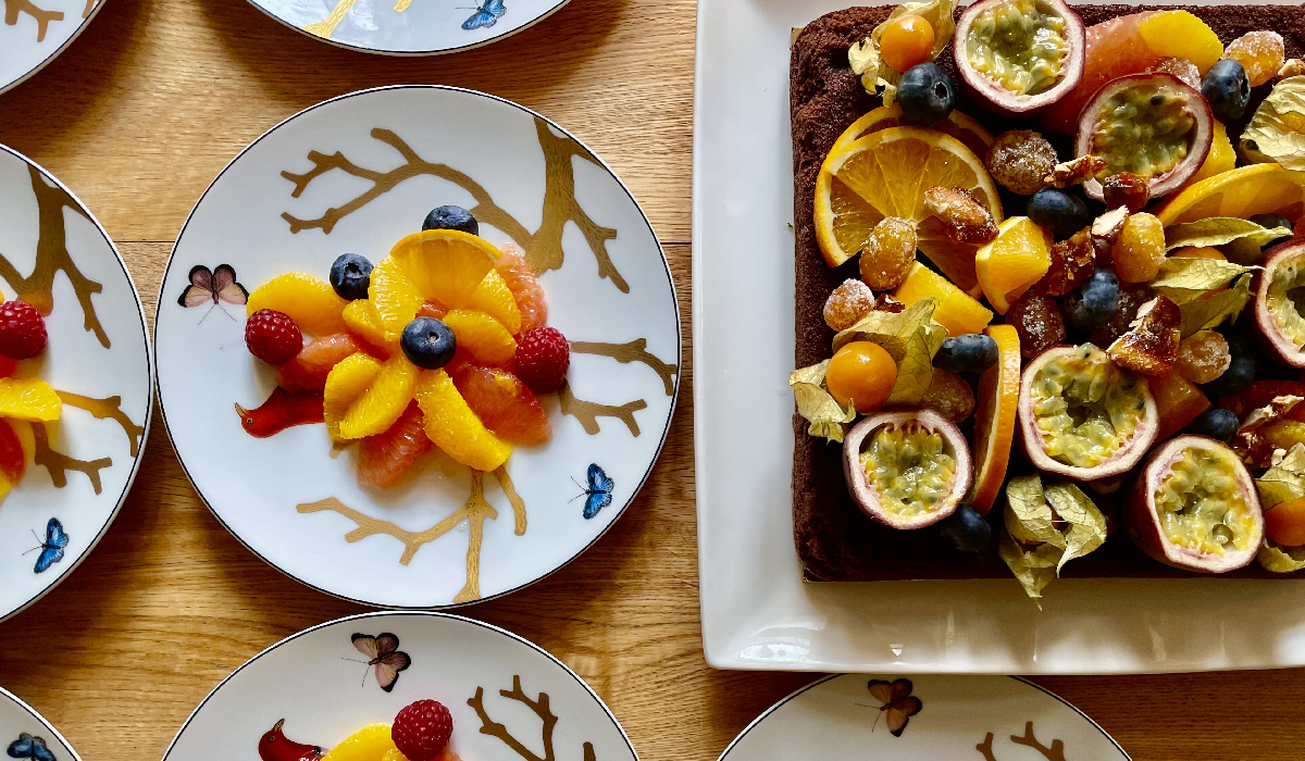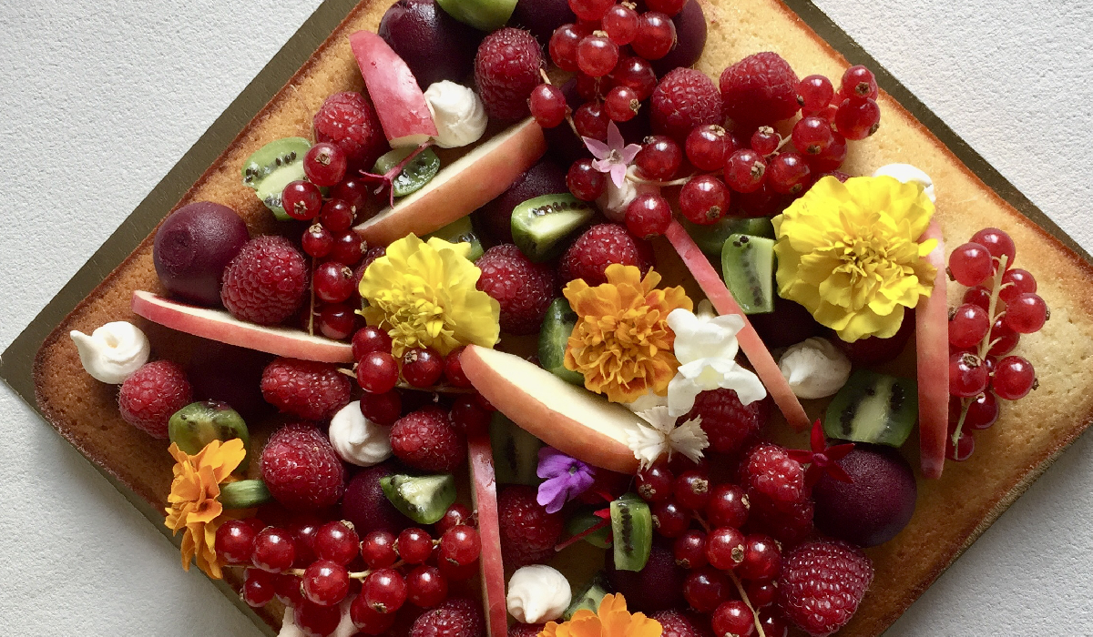 Gâteau décoré de fruits frais