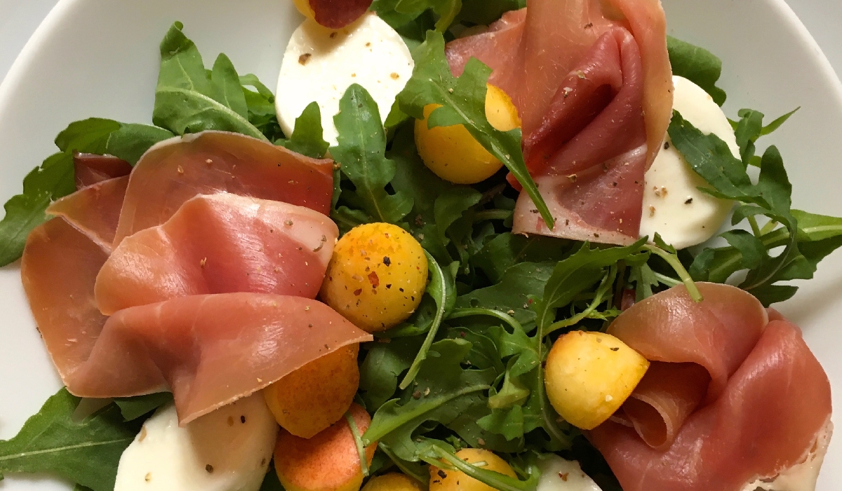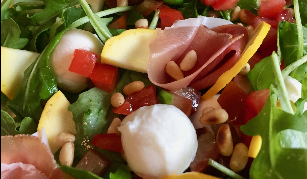 Pignons, buffalina et jambon cru