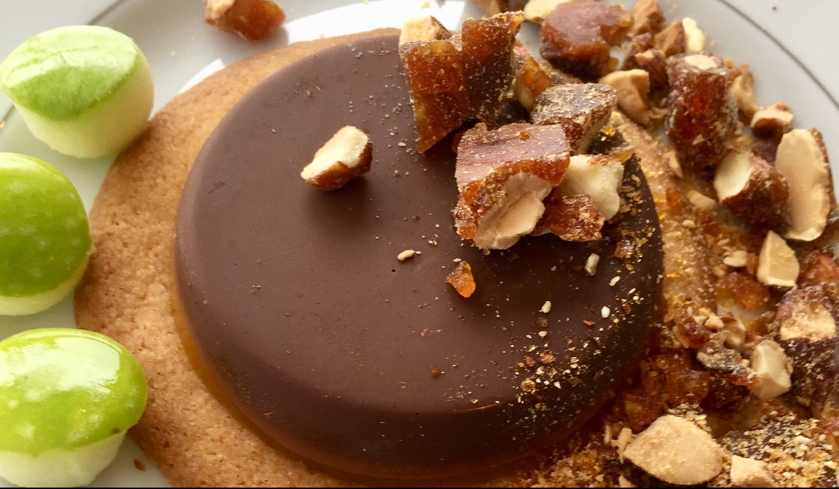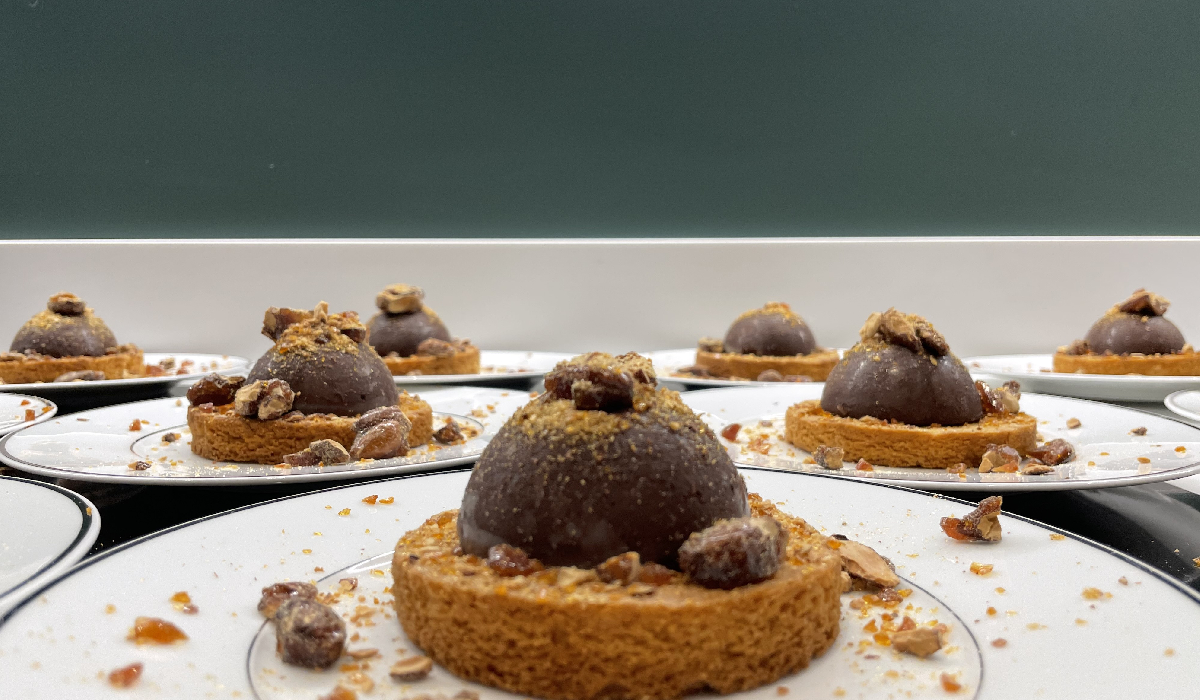 La célèbre tarte au chocolat et amandes caramélisées des Cousines