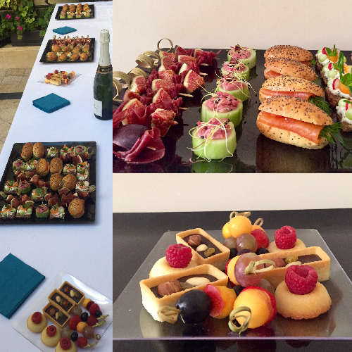 Assortiment de pièces individuelles et de verrines salées et sucrées, livré dans des contenants jetables, prêt à être déposé sur votre buffet.